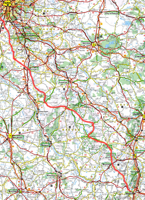 Comme souvent lors de mes balades à moto en direction du sud-est, la première étape consiste à rejoindre ma ‘base de lancement’ familiale, située en Saône et Loire. Voilà donc une petite journée tranquille et ensoleillée, mais terriblement banale. Vivement le vrai départ.