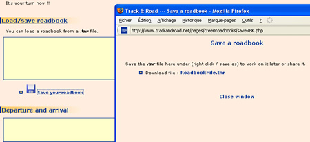 Right-click on FichierRoadbook.tnr in the pop up window which just ope, and save the file.