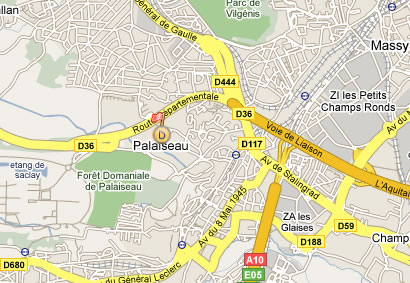 Go in the eponym section, set ‘France’ in country menu and type ‘palaiseau’ in the start field. Click on ‘locate‘. ‘D’ marker will appear in the middle of Palaiseau city.