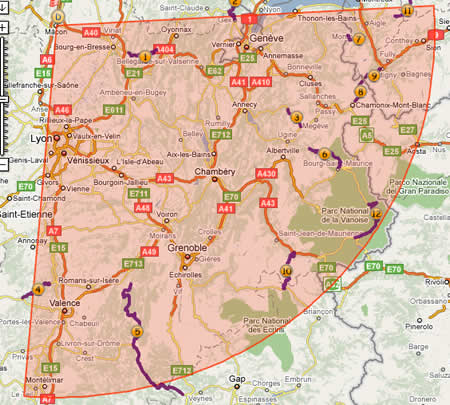 Click on ‘zoom back to initial map‘, under the map. Go back to the table, let arrival field empty and click on locate. A marker will be set up in the middle of the map. Move it at the north of Lyon.